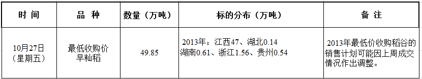 10月27日最低收购价稻谷(2013年)竞价销售交易公告
