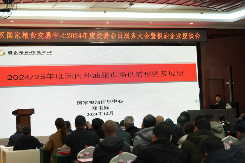 纵横形势,激荡智慧。国家粮油信息中心决策服务处副处长郑祖庭、行业知名专家合肥市粮食集团市场经营部部长宁夏、湖北粮网省级分析师王薇雅先后对当前市场形势进行了分析,对明年走势进行了解读。三位专家分别从国内外油脂市场供需形势及展望、几大主粮品种行情走势与2025年储备粮轮换策略等几个方面详细进行了阐述。他们的分享视角全面,数据详实,既有宏观分析,也有微观操作,受到了与会企业的一致好评。